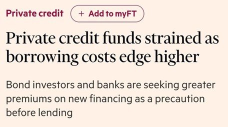 This article was published at a time when first-quarter earnings are being released, as investors look for guidance on the issues in private credit, and to see who is exposed to what. Last week, Wall Street banks released their earnings and, for the most part, had decreased their private credit exposure, looking to be in good shape. On the other hand, alternative managers like Blue Owl, Blackstone, and Ares have elevated exposure and cannot pay out investor redemptions. On top of that, banks are reducing exposure and raising borrowing rates for private credit lending. This could lead to more dominoes falling: