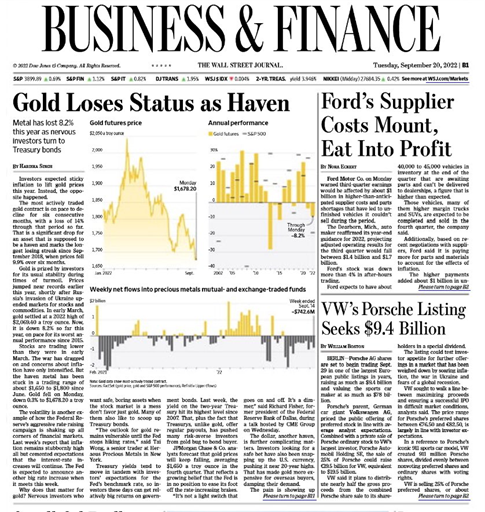 In a September 2022 issue of The Wall Street Journal, the publisher made gold its cover story. They were not pushing gold as an option to investors; they claimed that the asset had lost its status as a safe haven. We all know that did not come to be true, as the price of gold has nearly doubled since that date.