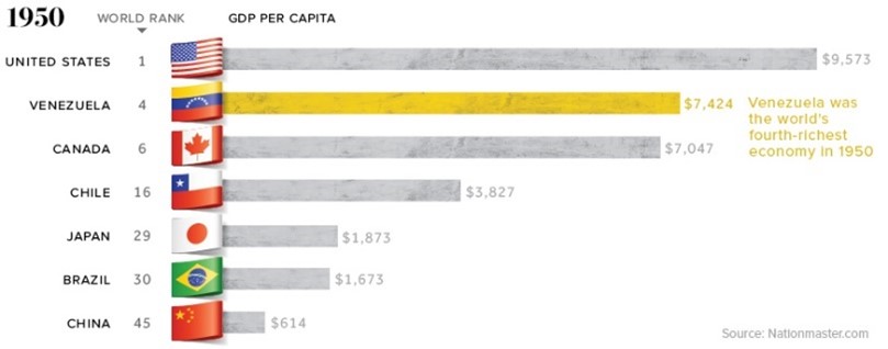 Venezuela was once the most stable and wealthy Latin American nation, and one of the wealthiest in the world in terms of GDP per capita.
