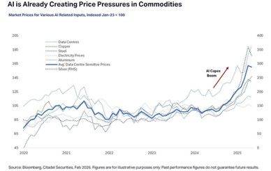 According to Bloomberg and Citadel Securities, the recent commodity surge that we have seen has been caused by the growth of AI: