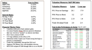 Despite the meteoric rise of cryptocurrencies be they BITCOIN, Ethereum or a pseudonym for the plethora of other cyber currencies out there, the MAAM investment team is united in the belief that the underlying technology is here to stay. With that out of the way, what do we make of the massive gains in BITCOIN’s price? Well, BITCOIN itself doesn’t appear to exhibit any of the psychological symptoms of a bubble. The cyber currency hasn’t become a mainstream topic on social media or gatherings although that could change soon. Secondly, most Canadians aren’t quitting their day jobs to speculate on BITCOIN. And finally, skeptics of BITCOIN are not immediately dismissed or chastised as being over-the-hill or woefully behind the times. All that can be said is that the digital currency has moved, a lot. We note that many analysts [good ones] are suggesting that in time, recent price movements in cryptocurrencies will be a memory as more and more interest [and contempt for Central Banks and authorities] flows into what is arguably the most significant technology this decade.